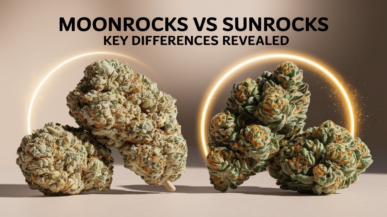 Potency and consistency. Moonrocks contain 40-50% THC using mixed strains, while sunrocks pack 50-80% THC from single strains. Sunrocks offer better quality control and predictable effects, but moonrocks cost less and provide more variety.
